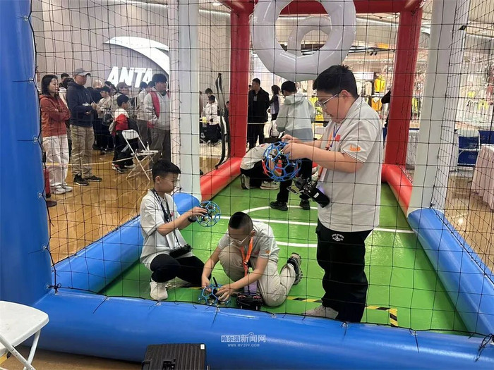 “3、2、1!嘟——”赛场上,跟着裁判口令与哨声响起,对战两边选手同步动手无东说念主机,单干配合、攻防博弈,向对方球门发起冲击。空中无东说念主机疾速穿梭、生动悬停、急速变向,赛场节拍垂危强横。“守门!回防!稳住占位!”选手们及时疏导、协同作战,攻防快速调遣,球门前沿挣扎交锋不停,充分展现塌实的操控功底与高效的团队通晓。每当破门得分,裁判宣判进球有用,赛场便须臾迎来容或。